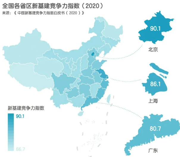 清华大学互联网产业研究院《中国新基建竞争力指数白皮书(2020)》,将中国31个省份的新基建竞争力差异以指数的形式量化。