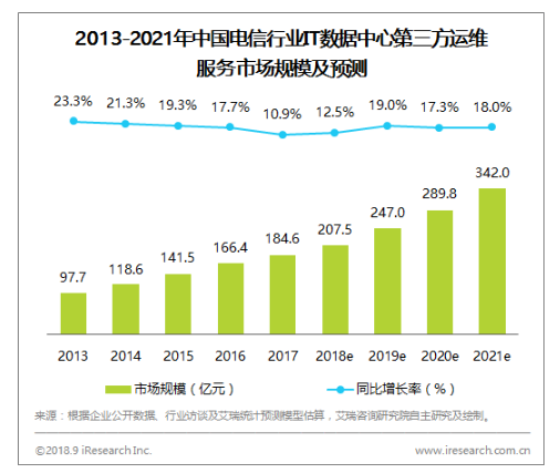 近年来的电信行业数据中心第三方运维服务市场规模预测