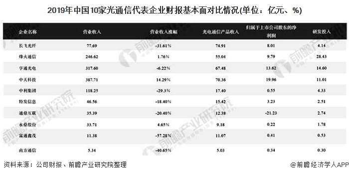 2020年4月30日,国内十家光通信企业公布了2019年财务报告,在10家企业中,其中7家企业的业绩都出现了不同程度的下滑,只有3家有一定幅度的增长。