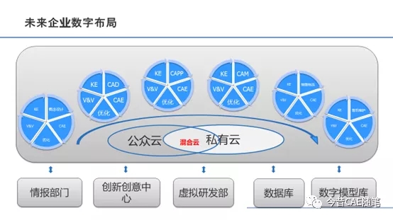 对未来企业的数字布局做了一些修改,企业私有云和公众云之间不断有数据交互,甚至有合作形成混合云,而企业的数据中台支持企业的所有的运作部门,知识在企业活动中,被产生,挖掘,规范,存储,流转,推送,重用,并不多产生组合成新的知识。