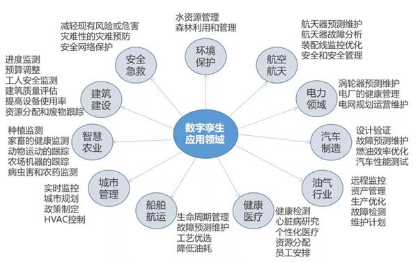 数字孪生技术自提出以来,在航空业和机械制造业取得了长足的发展,在整个设计、制造、服务阶段发挥了巨大作用,并逐渐成为企业新的业务形式,如 PTC、达索、西门子等将数字孪生理念应用到产品设计、 生产制造、故障预测、产品服务中,实现了制造全周期数字化。目前,数字孪生技术的研究和应用正在全球如火如荼的展开。2016-2018 年,全球权威 IT 公司连续三年将数字孪生列为十大战略科技趋势之一,美国将数字孪生视为工业互联网系统的关键之一,德国将数字孪生作为实现工业 4.0 的重要技术,目前,数字孪生技术已有多领域的研究和应用,涉及智能制造、智能工厂、智慧城市等,为智能化的发展注入了新的动力源泉。