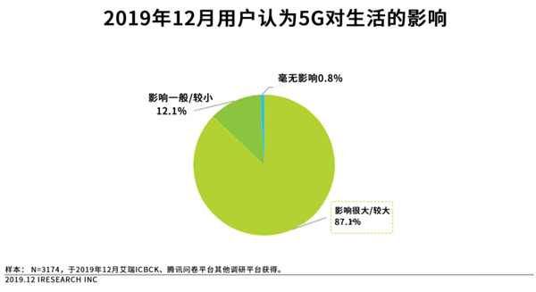 用户对5G的认知度高,认为5G对生活的影响大。5G的明星效应,吸引了各界企业。高密度的新闻、广告、展会宣传,使5G已成为家喻户晓的通信技术。调研结果显示,57.2%的用户比较了解或非常了解5G,87.1%的用户认为 5G将会为生活带来较大或很大的影响。可见,现阶段用户对5G的认知度高,且认为5G对生活的影响大。