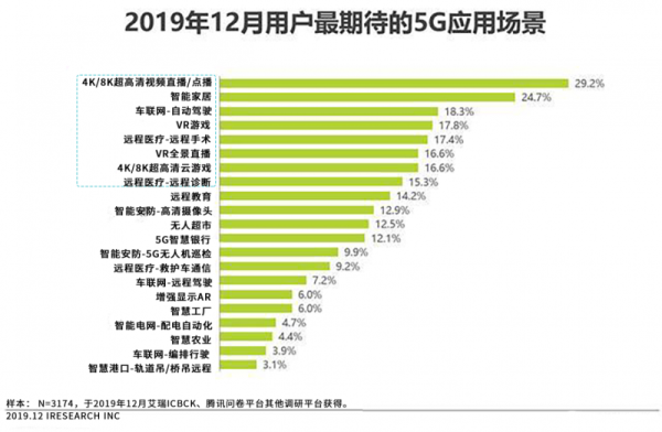 娱乐、家居、交通及医疗类应用场景的认知度高,期待度高。5G自提出以后便备受关注,目前在各行业的共同努力下,已出现多种5G应用场景。在众多的应用场景中,娱乐、家居、交通及医疗类应用场景的认知度较高,期待程度较高。对极致娱乐与生活体验的追求是多数用户期待这些应用场景的主要原因。
