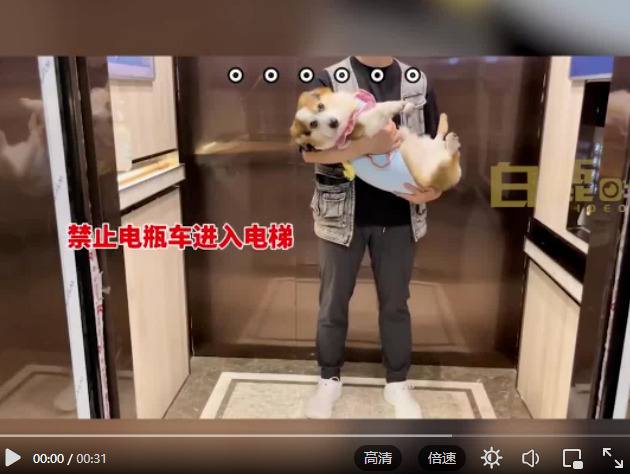 据“白鹿视频”报道,一网友带着自家宠物柯基进入电梯时,电梯突然自动报警,不断提示“禁止电动车进入电梯”,场面十分令人无语。狗子的主人尝试让狗子独自进入电梯,也尝试将狗子抱起,但都出现了警报。