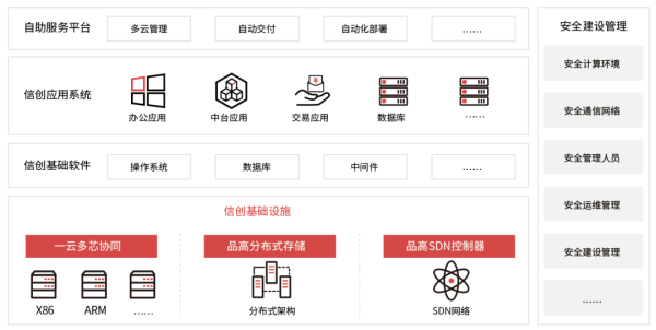 在以多样化国产处理器芯片为底座的基础设施生态发展格局下,由于各芯片采用不同架构,单一的指令集路线架构无法完成满足多样化业务的替代,给用户选型带来了困难。品高信创云解决方案提供一云多芯可协同的能力,为广发证券打造自主可控基础云底座,可充分发挥各底层硬件算力性能,实现多种异构芯片在单一高可用资源池中无缝协同支撑某个业务或多个业务,满足上层业务对资源的不同需求。