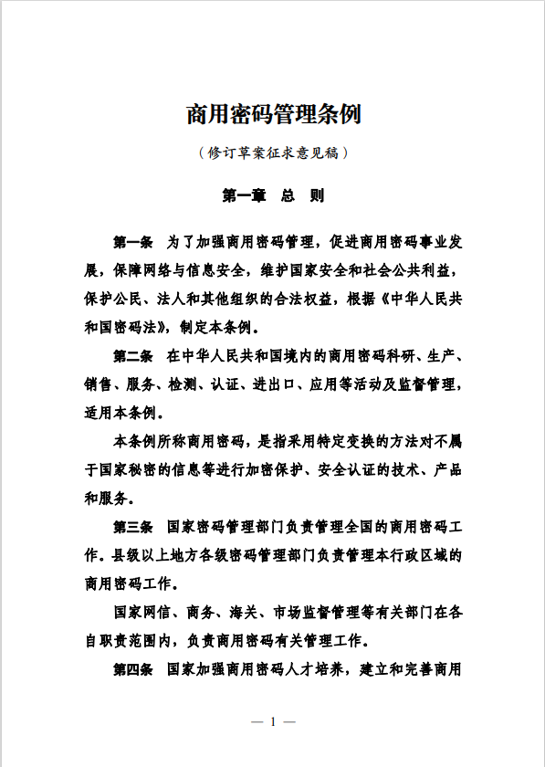 2020年8月10日,国家密码管理局发布了《商用密码管理条例(修订草案征求意见稿)》(以下简称《条例》(征求意见稿)),对1999年发布并生效的《商用密码管理条例》进行全面修订。