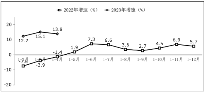 软件业务出口增速小幅回落。1—4月份,软件业务出口150亿美元,同比下降3.3%。其中,软件外包服务出口同比增长5.4%。
