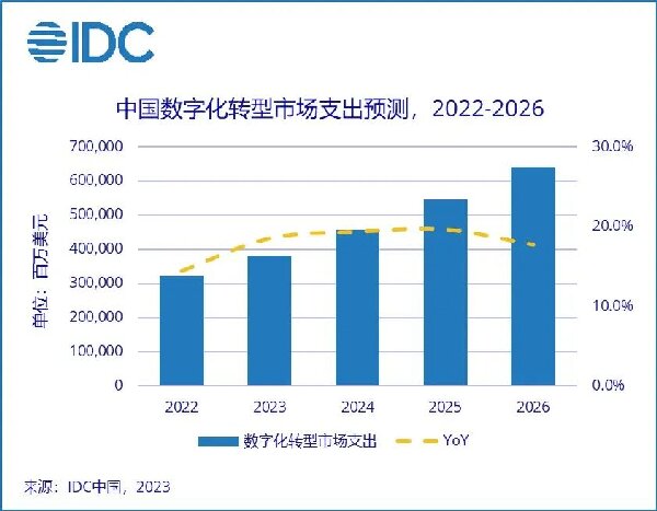 聚焦中国市场,伴随着《数字中国建设整体布局规划》等利好政策的扶持,各行各业的终端用户对于数字化转型的需求不断增加,中国的数字化转型市场将保持高速增长态势。IDC最新数据显示,到2026年,中国数字化转型支出规模预计超过6,000亿美元,五年复合增长率将达到17.9%,增速位于全球前列。