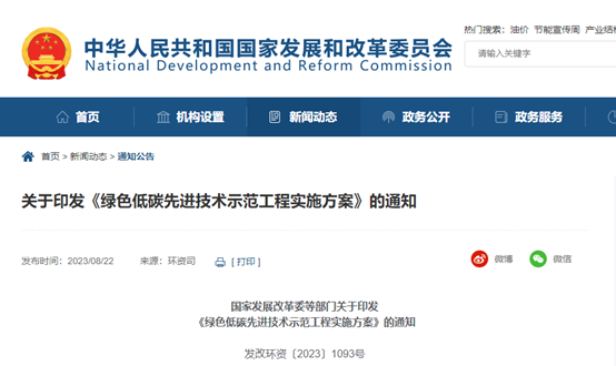 国家发展改革委等部门关于印发《绿色低碳先进技术示范工程实施方案》的通知
