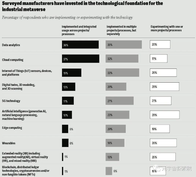 然而,目前大部分项目仍处于试点阶段,但也有一些项目已经开始认真应用与元宇宙相关的技术,这不再是实验,而是实实在在的应用。