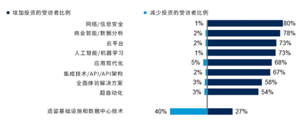 调研显示,CIO在2024年的首要投资领域包括网络安全、数据分析和云平台(见图一)。