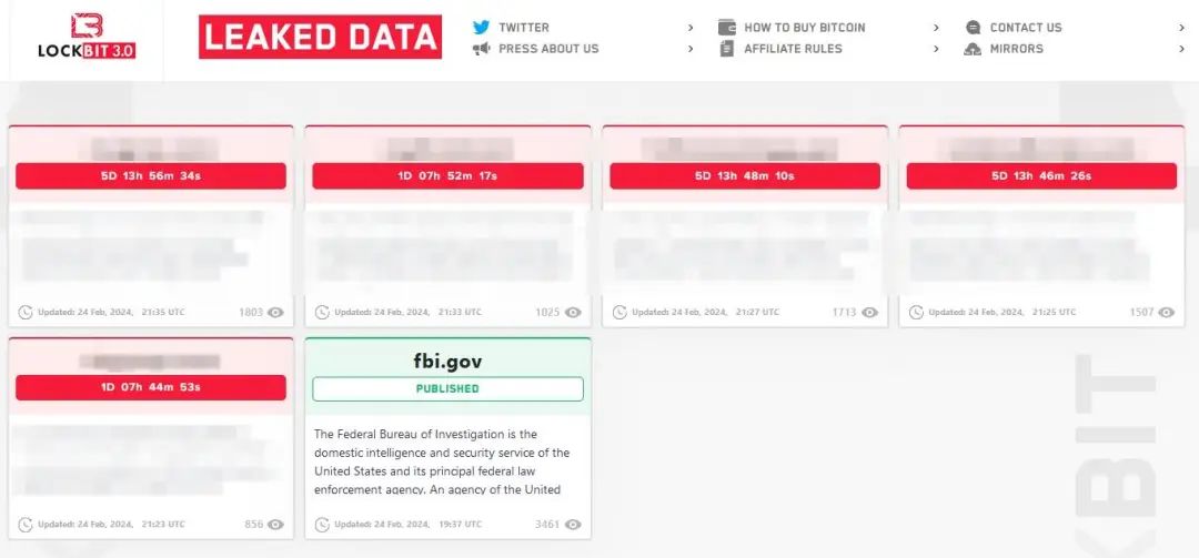 上周,有关部门拆除了LockBit的基础设施,其中包括托管数据泄露网站及34台服务器、从受害者窃取的数据、加密货币地址、解密密钥以及附属面板。