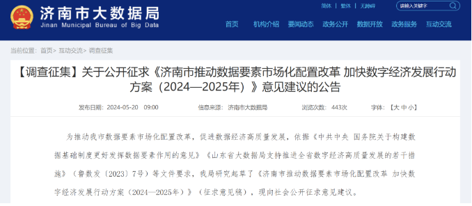 关于公开征求《济南市推动数据要素市场化配置改革加快数字经济发展行动方案(2024—2025年)》意见建议的公告