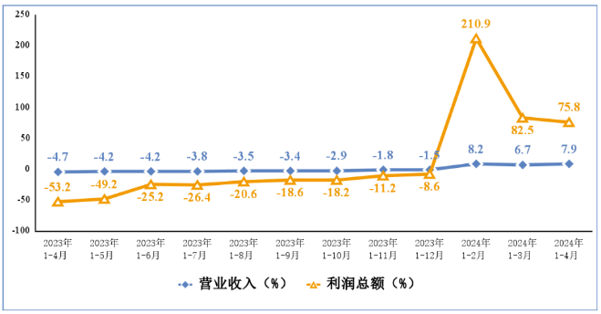4月份,东部地区实现营业收入8620亿元,同比增长13.3%,中部地区实现营业收入1926亿元,同比增长18.6%;西部地区实现营业收入1704亿元,同比下降2.3%;东北地区实现营业收入67.9亿元,同比下降2.2%。