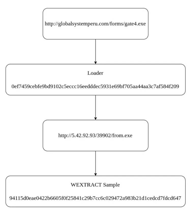 该恶意软件活动使用不同的C2 URL和IP地址,其中一些是WEXTRACT相关恶意软件所特有的,另一些则是其他活动所共有的。