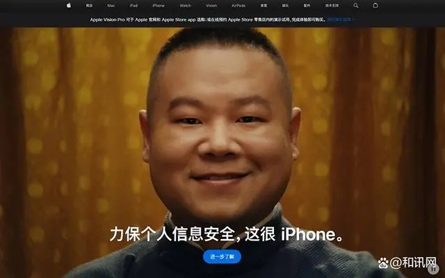 快科技7月8日消息,今天岳云鹏登上了苹果官网首页,其出演的苹果隐私安全广告短片正式上线。