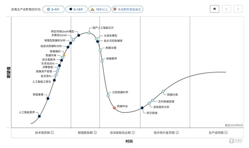 根据Gartner在2024年数据分析与人工智能技术成熟度曲线(中国版)中指出,“数据中台”落入泡沫破裂低谷期,并且,Gartner还提出了“数据中台即将消亡”的论断。