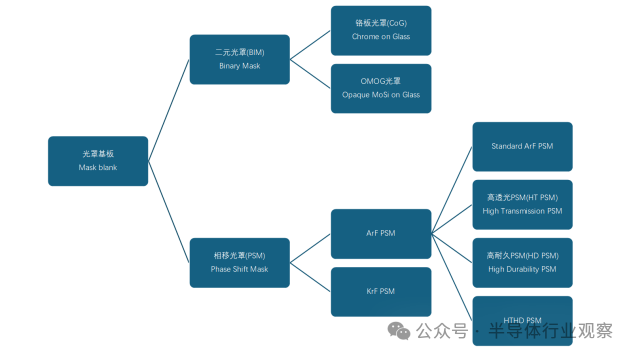 光罩基板(mask blank),又称为空白掩模,作为原材料生产带有图形的光罩,应用于光刻工艺中。根据光刻所需的不同要求,其结构和化学组成会有一定的区别。