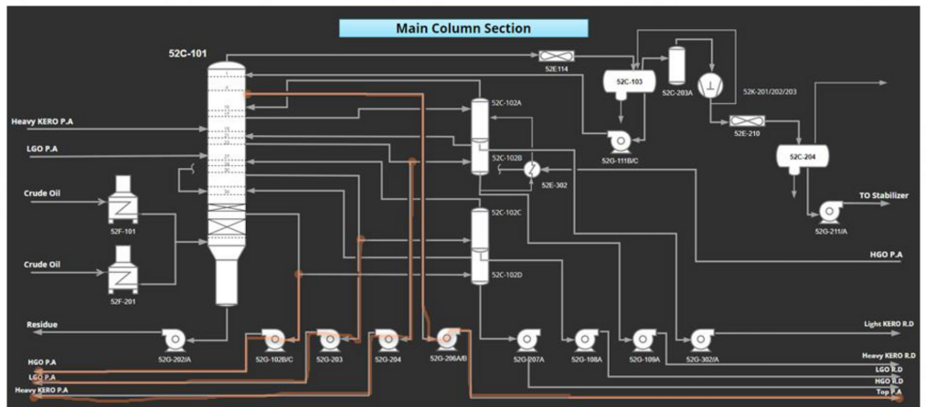 常压蒸馏是原油加工的第一道工序,炼油企业最重要的装置之一。根据原油中各个组分的沸点不同,用多点位协同加热工序,从原油中分离出各种石油馏分(汽油,煤油,柴油等)。炼化企业的产能就是指常减压蒸馏装置的常压塔的年处理能力。