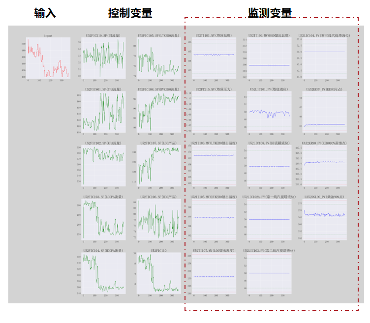 ●处理提量:根据外部单位时间的原油输入流量,采用人工智能手段提供控制策略,能够比人工调节更快的方式调节操作参数,使得系统在新的输入流量下稳定运行。