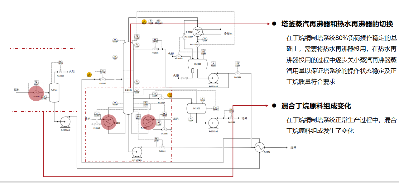 以丁烷精制塔控制为主要项目范围,针对其中的塔釜蒸汽再沸器和热水再沸器的切换和原料变化带来的控制变化为主要研究场景,通过人工智能的方式在安全生产的前提下,实现更加快速、精准、高效的控制。