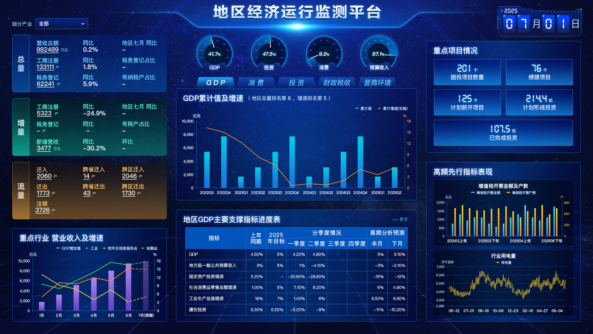 建设以用户为中心,以需求为导向,以数据为驱动的涵盖数智化平台底座和区域经济智算治理平台的区域高质量高能级经济系统,形成统一布局、功能完备、基础牢靠、技术领先、有序开放的“1+2+N”的区域经济智算治理体系,充分整合和挖掘政府内外部经济数据资源,驱动“高质量发展”的现代经济治理方式变革。