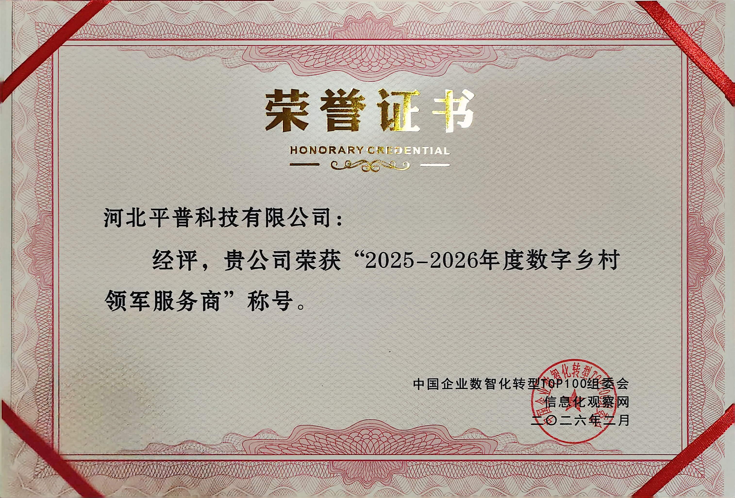 河北平普科技有限公司(简称:平普科技)是中国领先的乡村振兴数字经济运营商,专注于农业农村数字化建设、乡村资源与数据资产运营十余年;致力于为三农数字转型提供“融建管运一体化”全周期服务,凭借卓越的创新能力与专业实力,获评“专精特新”企业,被认定为国家高新技术企业,科学技术部新一代人工智能国家科技重大专项省级示范单位