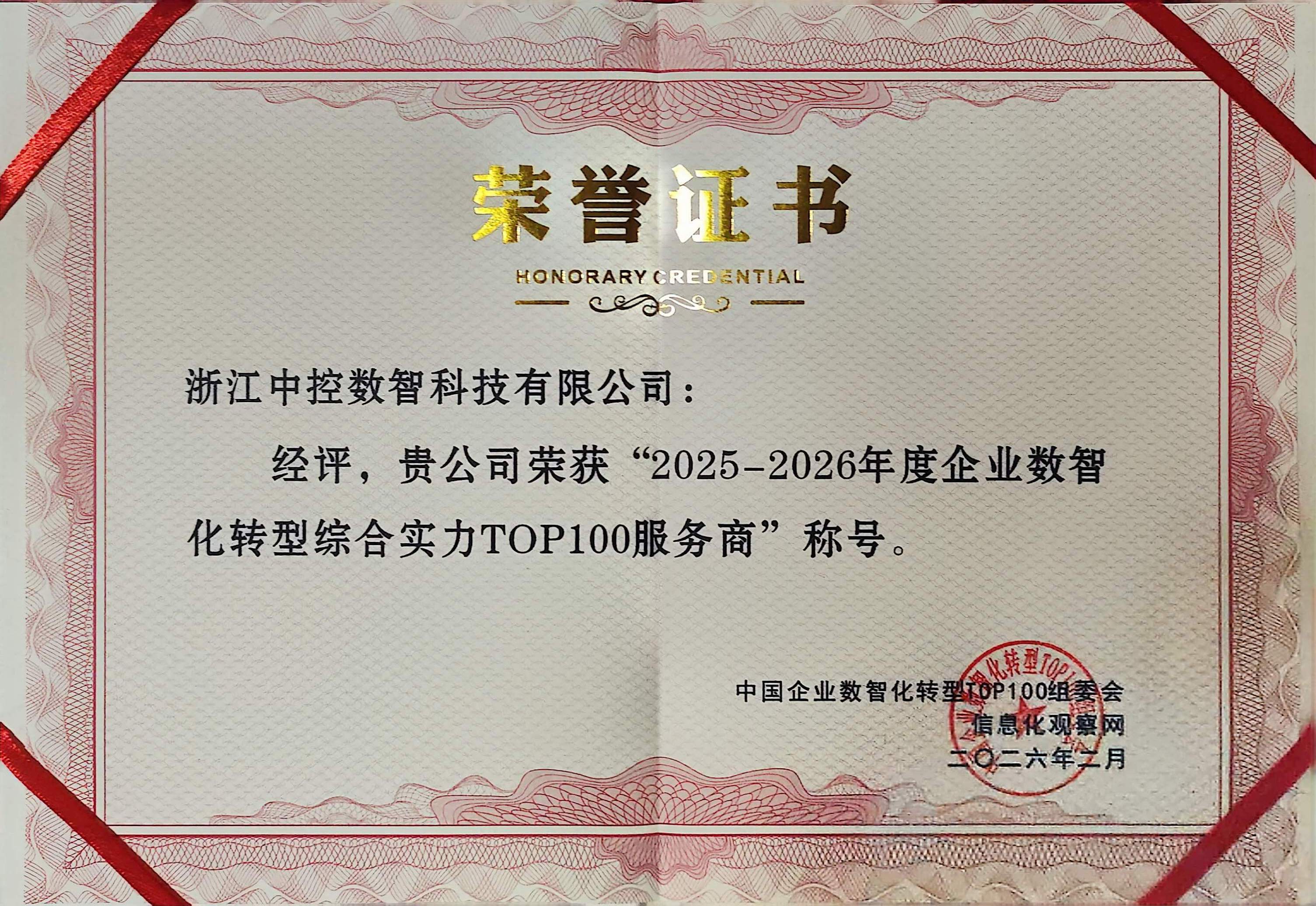 2025-2026年度企业数智化转型综合实力TOP100服务商